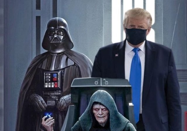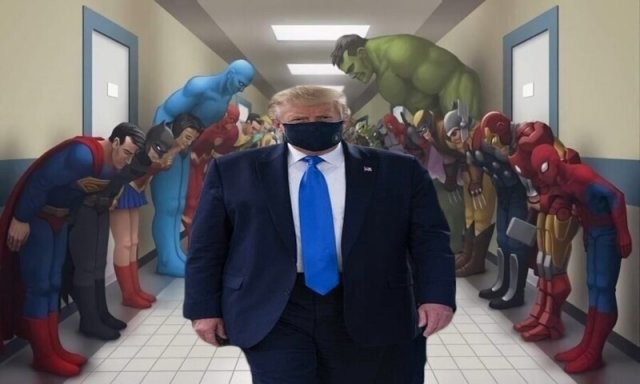 Президент США Дональд Трамп впервые появился на публике в маске. И это не оставили незамеченным любители фотошопа. Они тут же превратили американского лидера в мем.