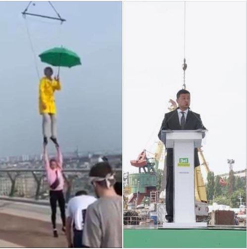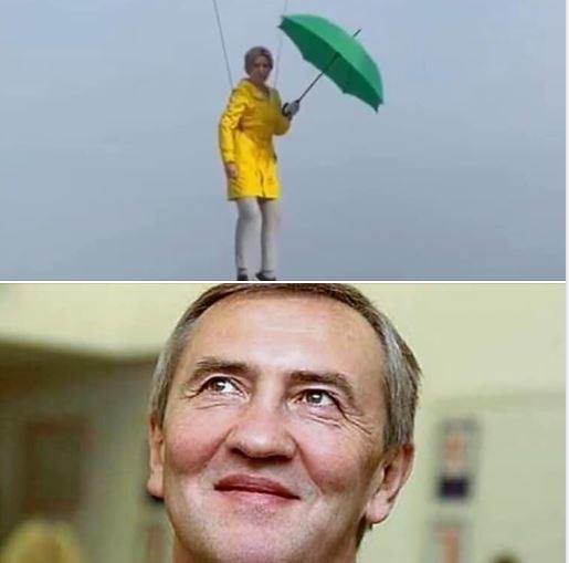 В соцсетях шутят над Верещук, которая «летала» на зеленом зонтике. Подборка фотожаб
