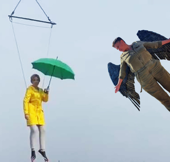 Верещук была подвешена в воздухе и держала в руках зонт, как Мэри Поппинс - персонаж сказочных повестей детской писательницы Памелы Трэверс, няня-волшебница.