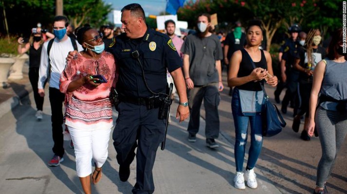 В родном городе погибшего Флойда - Хьюстоне - начальник полиции Арт Асеведо встал на колени вместе с протестующими.