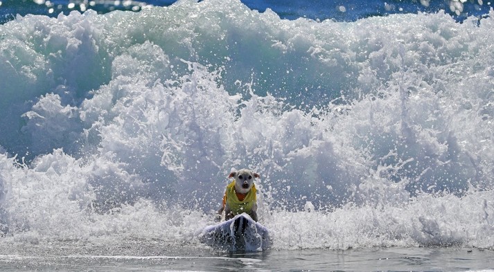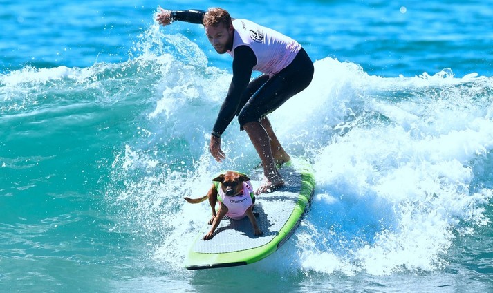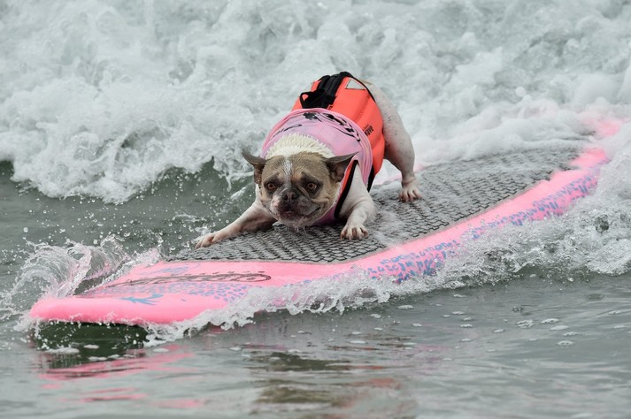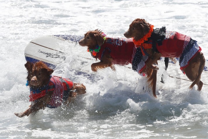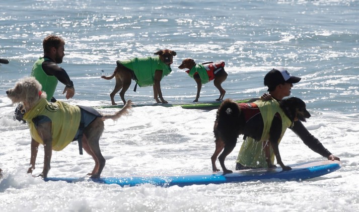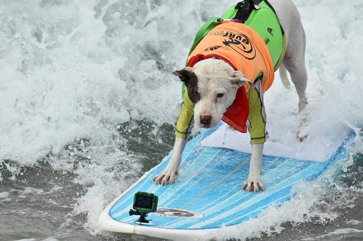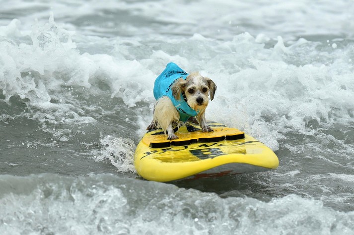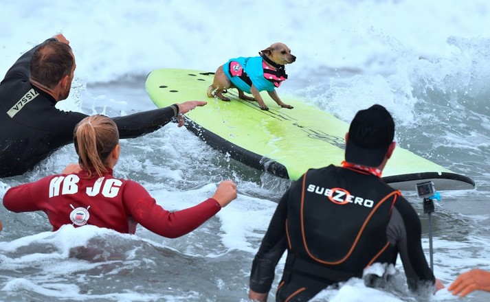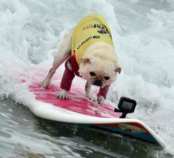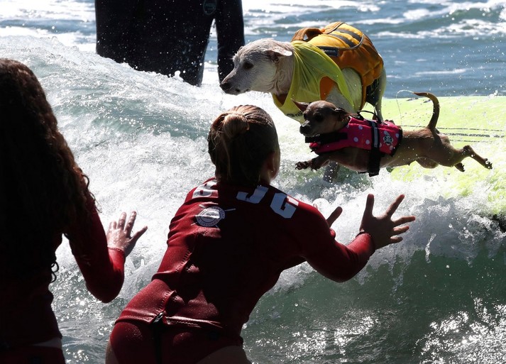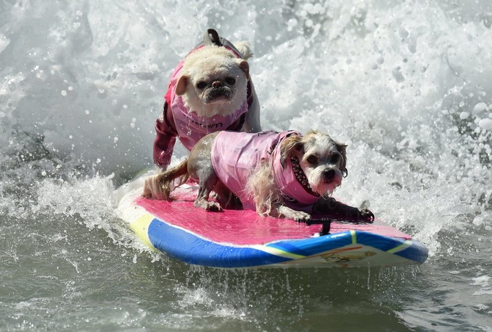 В минувшую субботу в Хантингтон-Бич, штат Калифорния, прошли 10-е ежегодные соревнования по серфингу среди собак Surf City Surf Dog. Пёсики соревновались в нескольких категориях, включая сольный серфинг, парный серфинг собак и серфинг собаки с человеком.