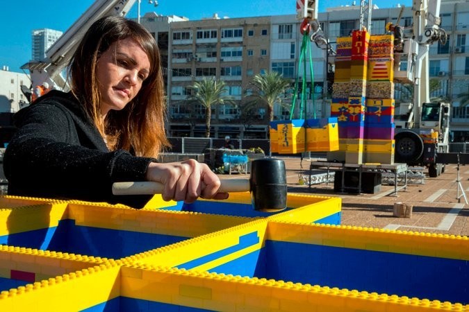В центре Тель-Авива на площади Ицхака Рабина открыли самую высокую в мире башню из кубиков Lego.