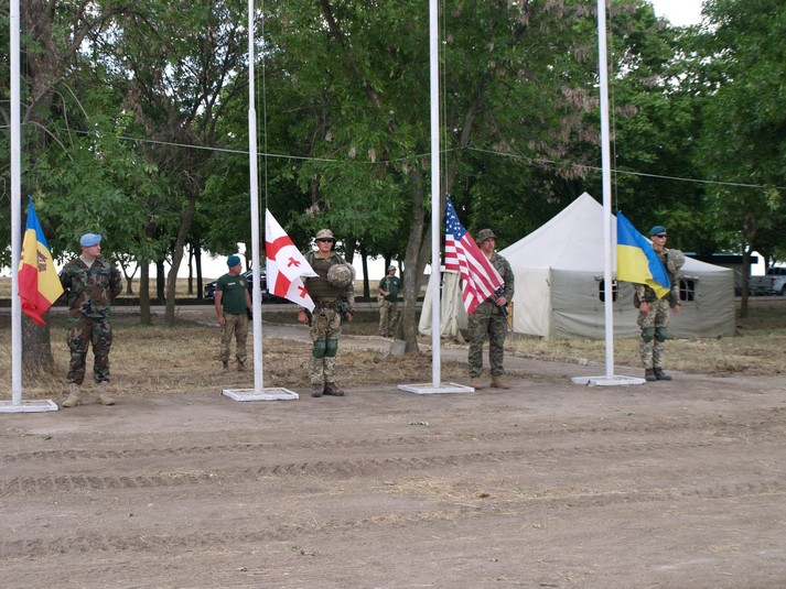 На плацу в полной боевой экипировке с штатным оружием сегодня выстроились шеренги военнослужащих, представляющих страны-участницы «Си Бриз-2019». На флагштоках были подняты флаги Украины, США, Грузии, Молдовы.