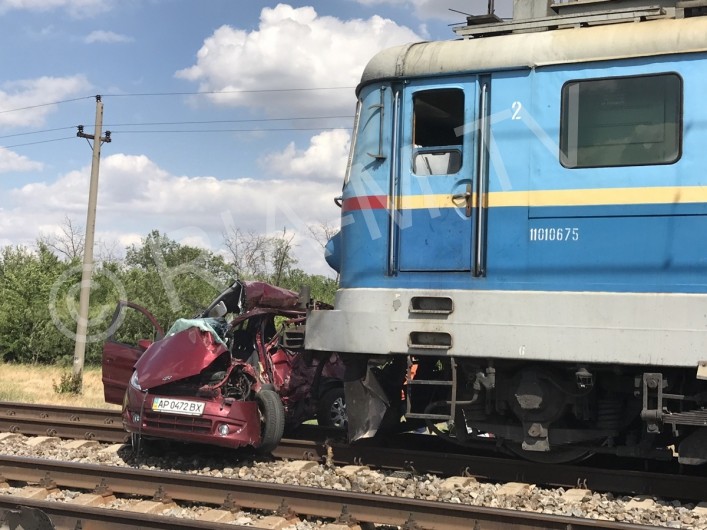 Сегодня днем, 5 июля, под Мелитополем на железнодорожном переезде поезд въехал в легковой автомобиль.