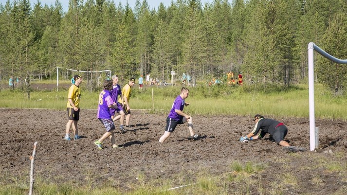 На заболоченном поле размером 60 на 35 метров играют в футбол две команды по 5 человек. На игру отводится 2 тайма по 13 минут. Соревнования проводятся ежегодно с 1998 года, а с 2000 года стали международными.