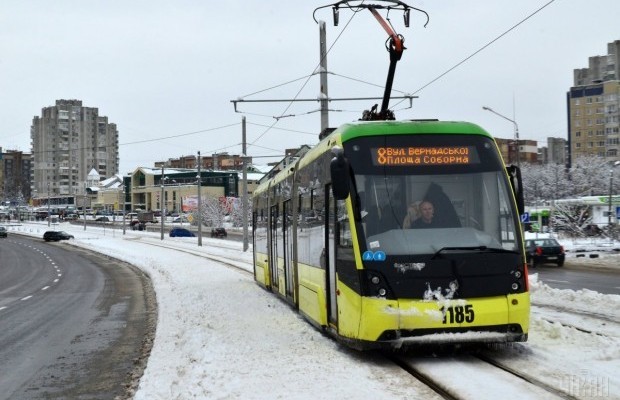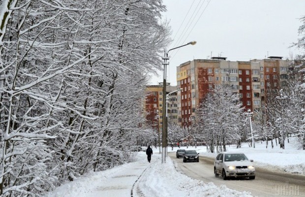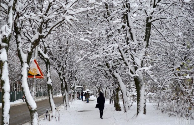 На запад Украины обрушился сильный снегопад, который принес во Львов яркие зимние пейзажи.