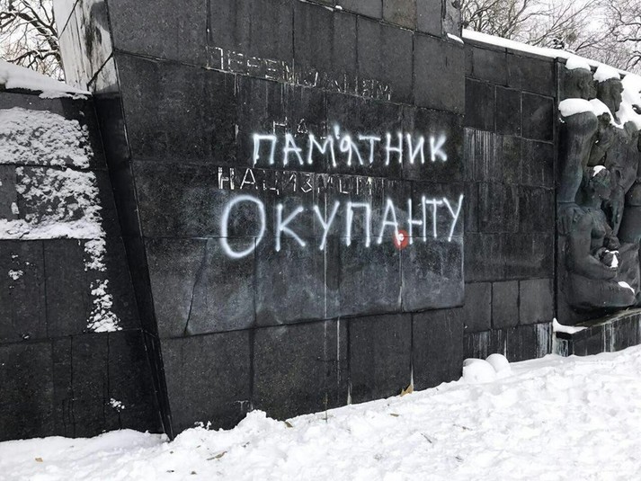 Во Львове неизвестные повредили Монумент Славы, оставив надпись «Памятник оккупанту».