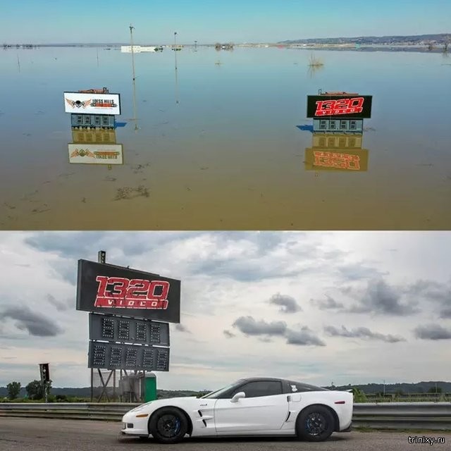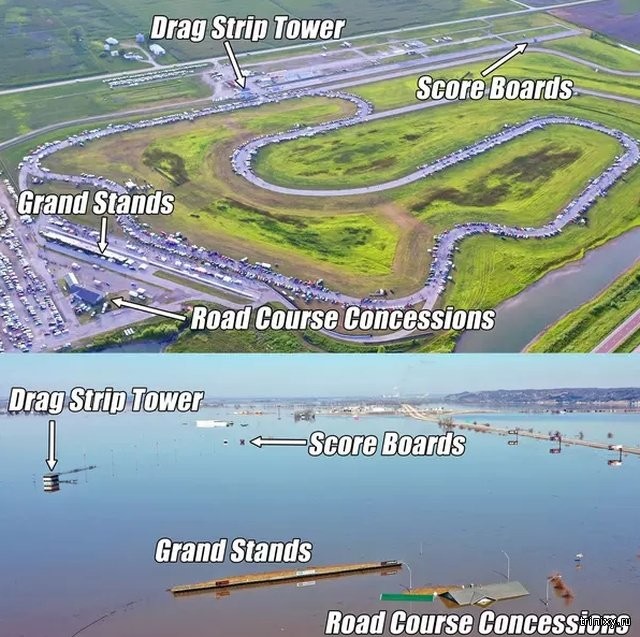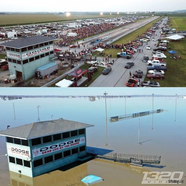Вода наделала беды. Как выглядит трасса для дрэг-рейсинга до и после разлива Миссури