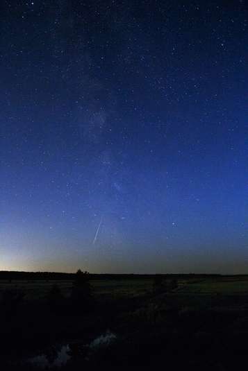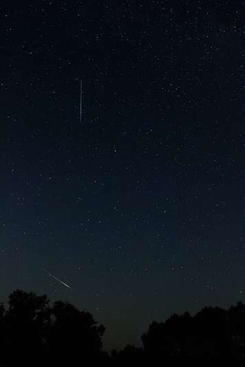 «Персеиды. Визуально видел лишь два метеора во время экспозиции этого кадра. Уже дома на компе разглядел еще три. Странно, что два из них летят не параллельно общему потоку, как это вообще должно было быть», - прокомментировал фото автор.