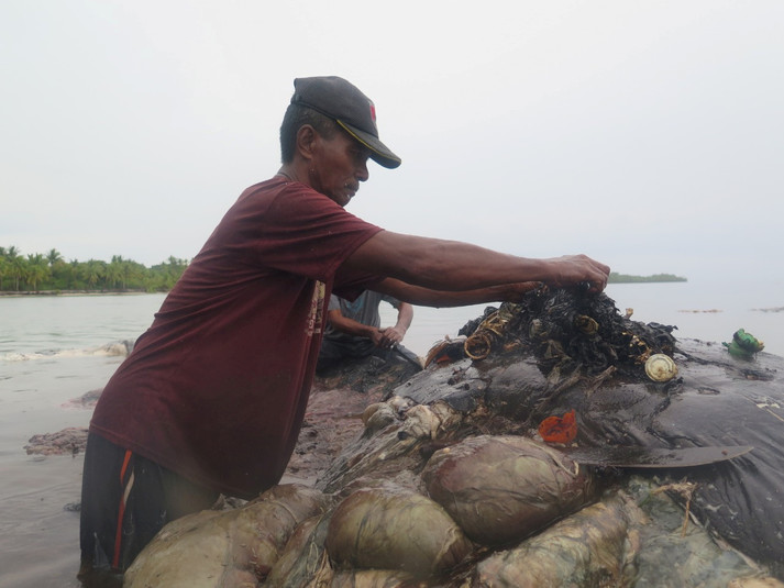 Возле берегов Индонезии обнаружили кита, желудок которого был забит пластиком