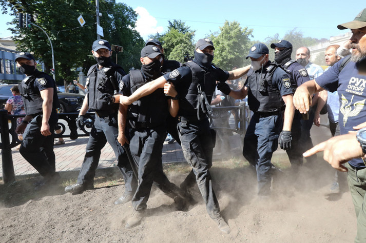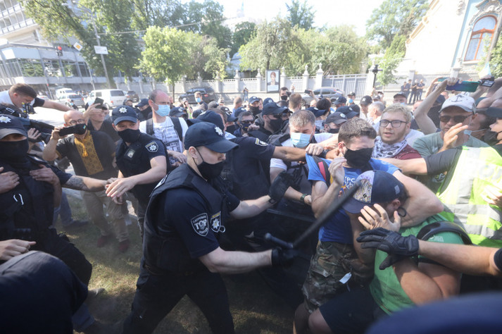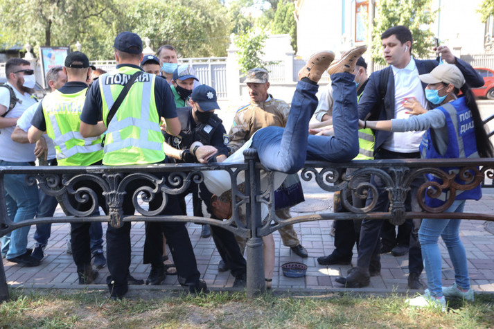 Около 50 участников акции пытались попасть с палками в Раду, но полиция их останавливала.
