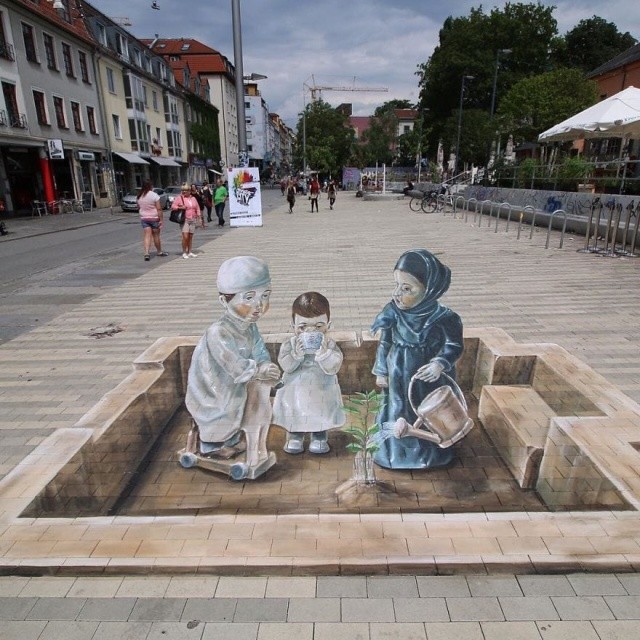 Такие трехмерные картины отвлекают прохожих от повседневности