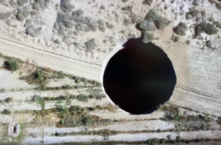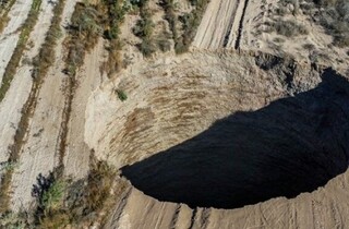 Пустынная почва у чилийского города Тьерра-Амарилья сначала провалилась на диаметре около 25 м и глубиной 200 м, на дне была видна вода. Через неделю оно расширилось – сейчас диаметр 50 м. Говорят, теперь там может уместиться Триумфальная арка из Парижа или шесть статуй бразильского Христа Спасителя с распростертыми руками рядом друг с другом.