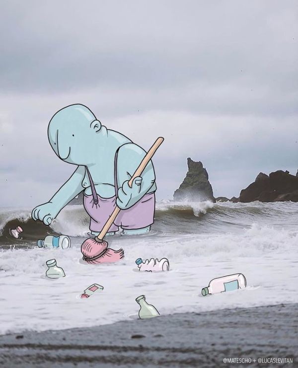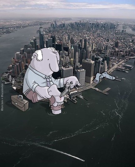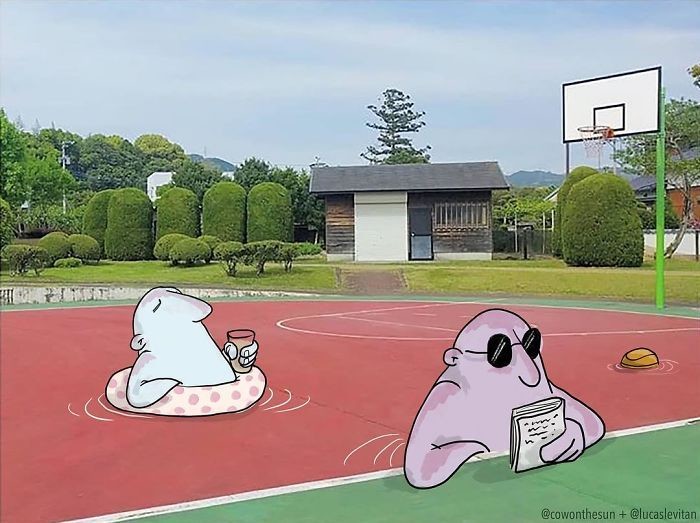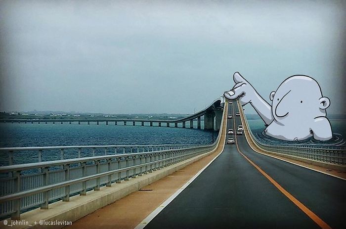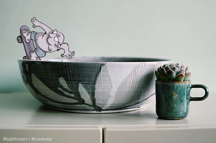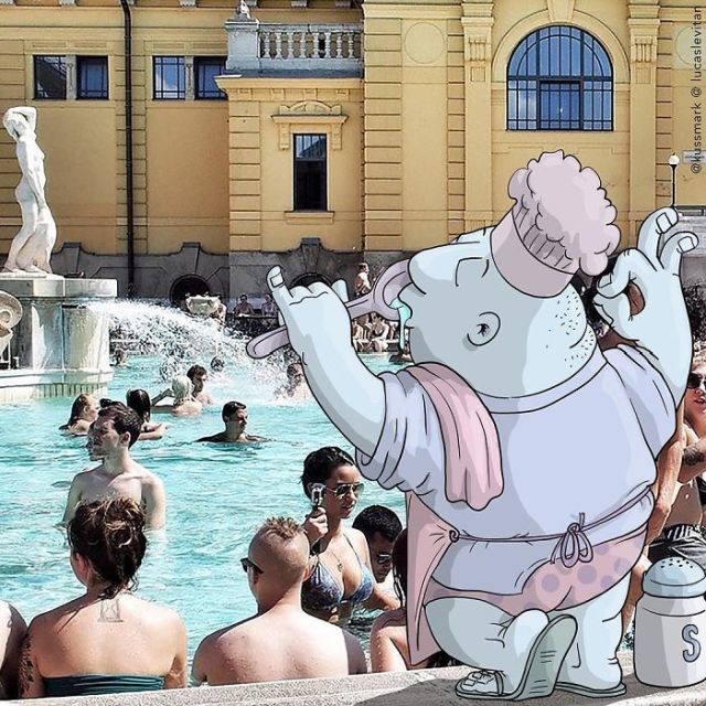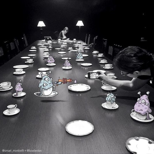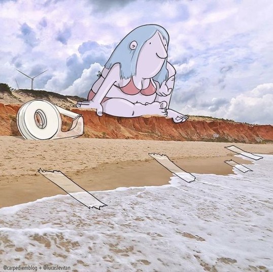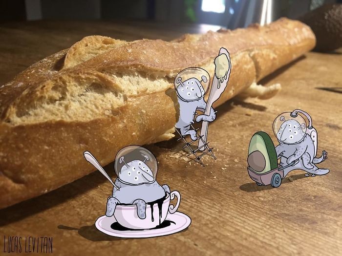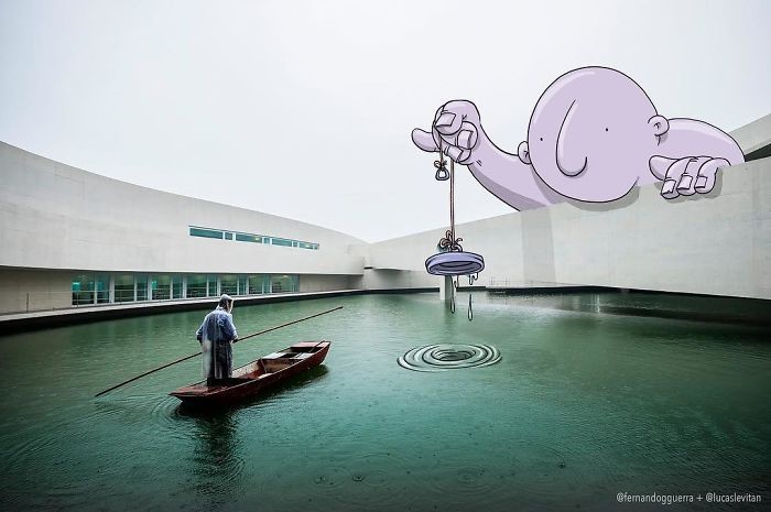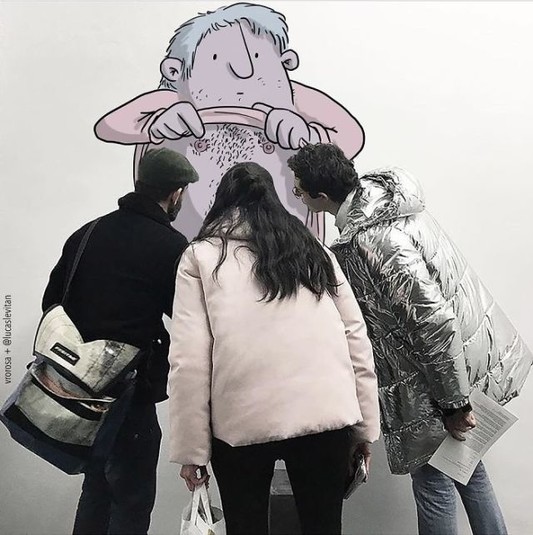 Хобби бразильского художника Лукаса Левитана (Lucas Levitan) - добавление забавных персонажей на обычные фото, которые он берет из Instagram.
