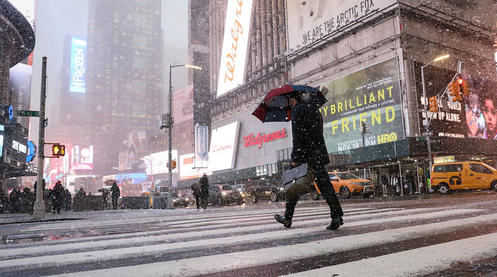 Зима идет на смену золотой осени. В Нью-Йорке выпал первый снег