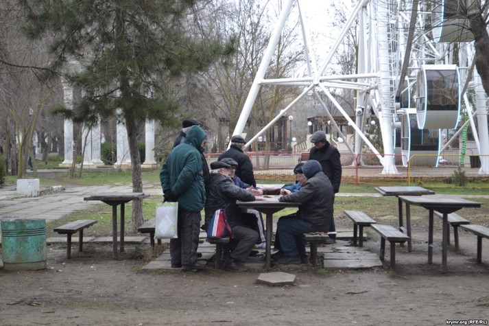 Зимой набережная пустует, а старожилы играют во дворах в домино