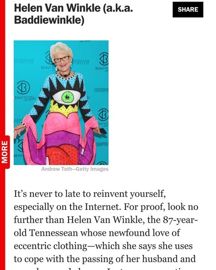 Сегодня у Винкл в Инстаграме 3,7 миллионов подписчиков. Известность пришла к женщине в 2014 году. Это случилось благодаря тому, что её правнучка сфотографировала её в домашней одежде, в частности, в носках с изображением марихуаны, и выложила в интернет. Люди неожиданно начали лайкать фото в большом количестве, и ради развлечения было решено создать собственный аккаунт для пенсионерки – где она в шутку будет появляться в молодежной одежде.