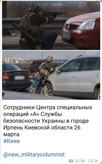 Так создаются фейки. Кремлевские телеграм-каналы сначала пишут, что есть фото сотрудников Альфы СБУ от 26 марта. Затем в следующем посте добавлять, что это масскировка. И уже в третьем посте и в публикациях СМИ пишут, что Альфа прикрывалась гражданскими в гуманитарных коридорах и поэтому оккупанты никого не пропускают и вынуждены обстреливать гумконвои.