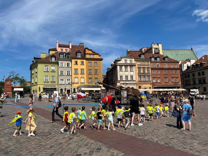 Второе. Дети в Варшаве, топающие вдоль открывшейся сегодня выставки уничтоженной нашими войсками российской техники (спасибо автору кадра).