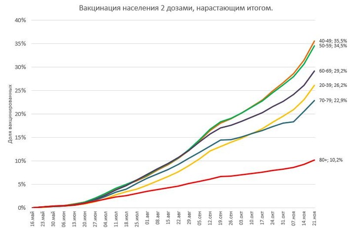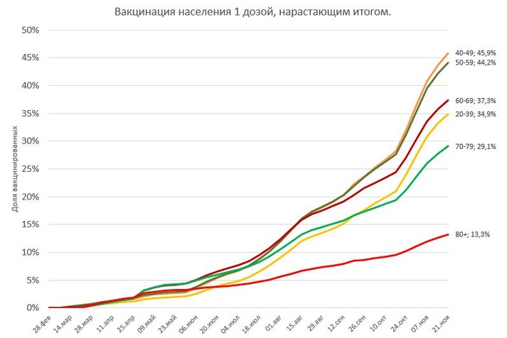 Вот наглядный график уровня вакцинации населения в разрезе возрастов.