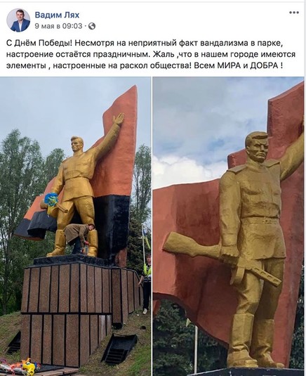 Власти этого города зачем-то решили покрасить флаг на старом советском памятнике солдатам Второй мировой в красный цвет. Раньше памятник был золотисто-серым, и это никого не напрягало. Но в какой-то момент чиновники, видимо, решили, что город слишком долго живет спокойной и мирной жизнью, и придумали устроить провокацию.