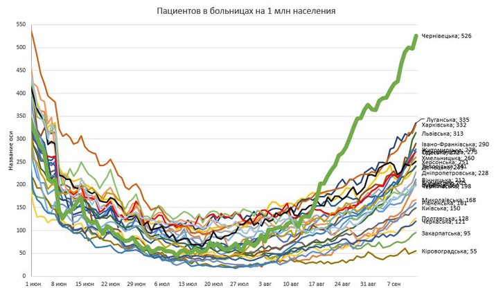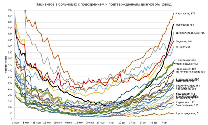 Посмотрите на общий график по областям. Харьковская, Львовская, Днепропетровская, Одесская области и Киев начинают практически вертикальный взлет.