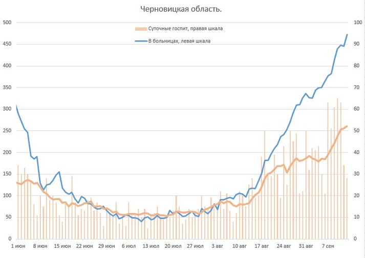 Отдельно выложил графики по самым горячим областям, рост в Львовской области просто пугающий. Всего 783 пациента, рост за неделю +73%.