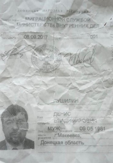 Посему представляем копию «паспорта Д.Пушилина» (извините заранее за состояние, сами понимаете, что нашим ребятам этот документ, как и весь пакет, уж никак не достался на блюдечке с голубой каёмочкой).