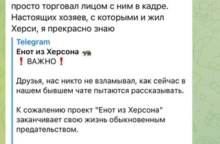 От имени енота целый год даже вели отдельный телеграмм канал «Енот из Херсона» который использовали для сбора денег с доверчивых Z-дураков. Ничто не предвещало беды, но тут случилось страшное – один из воров кинул других воров, замутил себе енота и собранное бабло с карты и сбежал.