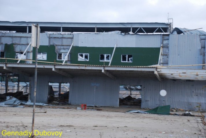 Теперь все выглядит так. Часть конструкций ободрали до бетонного каркаса. Также выглядит сегодня и то самое «Метро», которое назло хунте эпично разграбили в мае 2014.