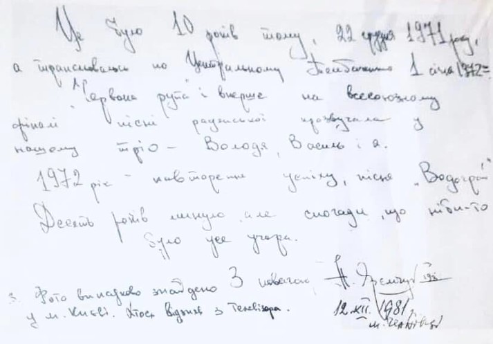 Назарий Яремчук: «22 декабря 1971, а транслировалось по Центральному Телевидению 1 января 1972-го, «Червона рута» впервые на всесоюзном финале прозвучала в нашем трио – Володя, Василий и я».