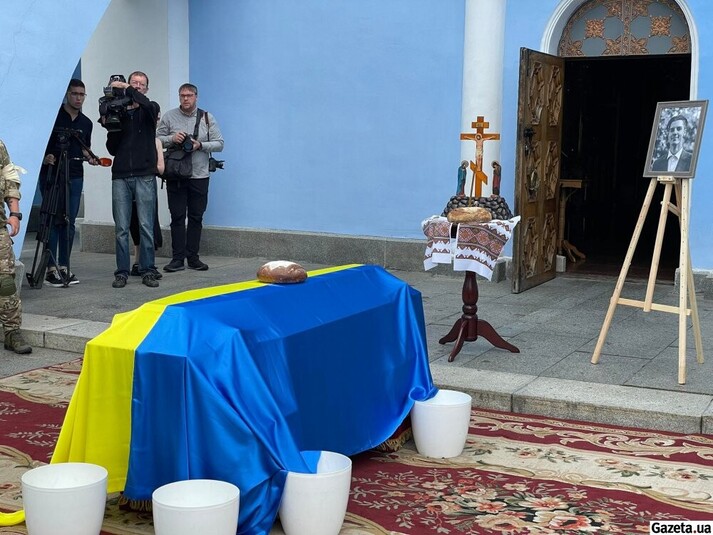 Утром 18 июня в Михайловском соборе в Киеве началось отпевание погибшего на войне активиста Романа Ратушного.