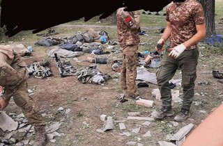 Появились новые кадры последствий ударов по базе ЧВК «Вагнер» в Попасной. На фото сгорело оружие и вещи «вагнеровцев».