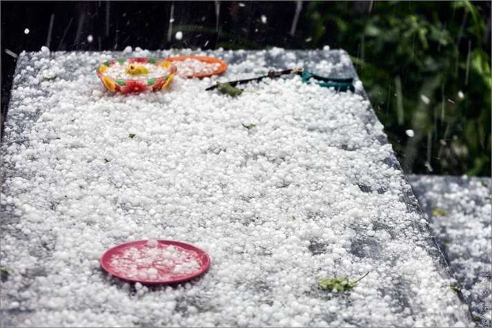 Вечером 17 августа во Львове прошел сильный ливень и выпал град размером с перепелиное яйцо.