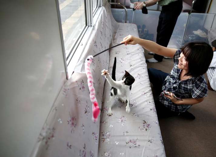 В Японии между префектурами Гифу и Миэ начал курсировать необычный поезд, в котором вместе с пассажирами едут около 30 кошек.