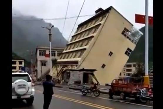 В Тибете наводнением, вызванным непрекращающимися ливнями, смыло пятиэтажное здание.