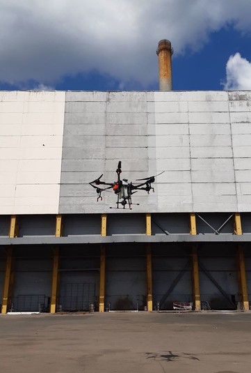 Дрон, который дезинфицировал завод «Энергия», поднимает в воздух 16 л дизраствора за один вылет и за 10-15 мин дезинфицирует территорию площадью до 20 тыс. кв. м.