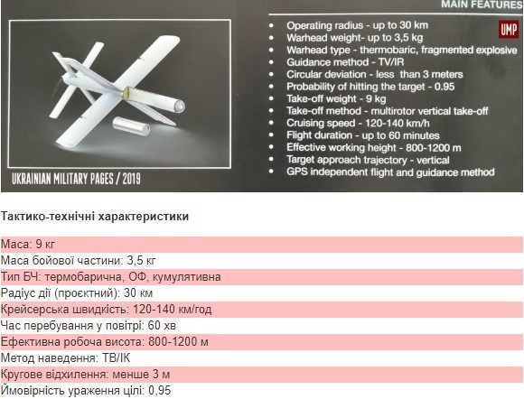 Боевая часть расположена в носовой части, имеет длину около 300 мм и ширину 90-100 мм. Весь комплекс - а это три боеприпаса, они одноразовые - укладывается в три тактических рюкзака весом до 15 кг, что дает возможность перемещаться расчету на необходимые позиции. Время развертывания комплекса - не более 15-20 минут.
