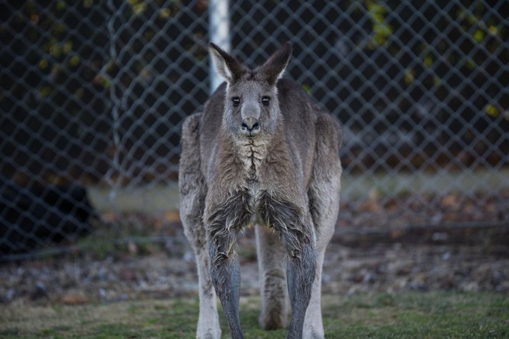 В Австралии во время футбольного матча между командами Belconnen United Blue Devils и Canberra на поле выбежал кенгуру. Животное перепрыгнуло метровое ограждение и легло возле ворот.