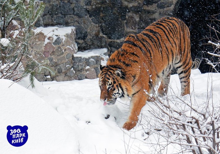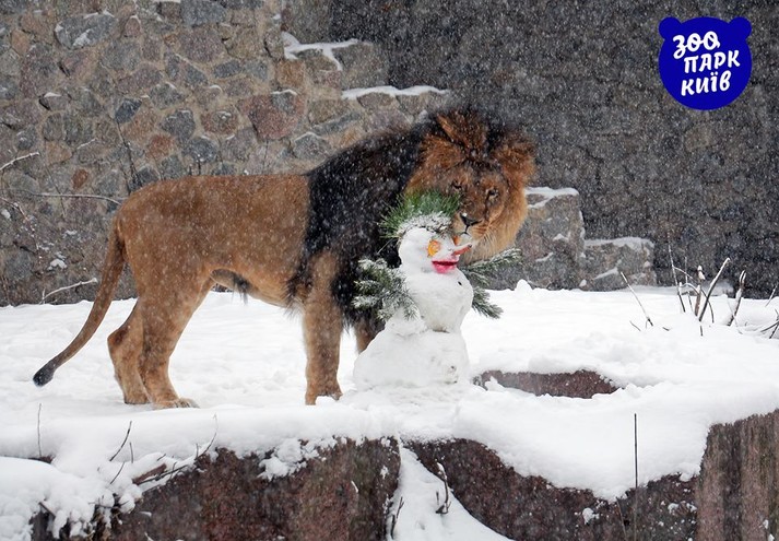 В киевском зоопарке животные радуются снегопаду: львы, зебры, яки и волки с удовольствием гуляют в уличных вольерах.