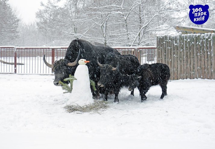 В киевском зоопарке животные обрадовались снегу (видео, фото)