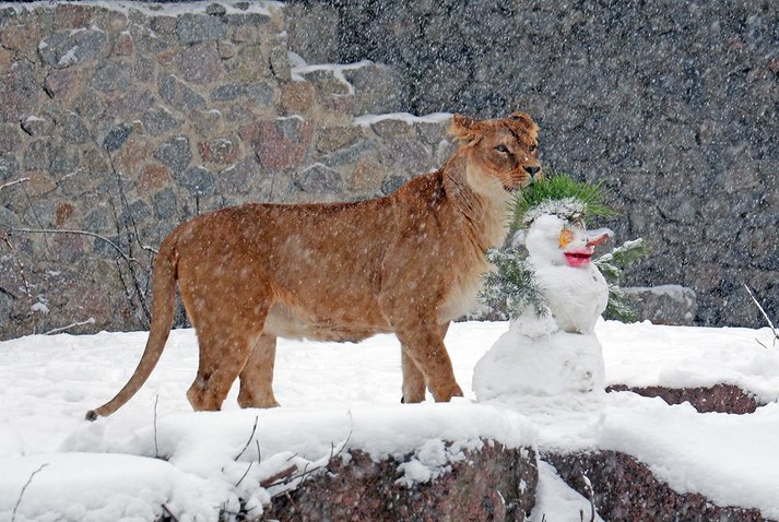Сотрудники зверинца слепили в некоторых вольерах снеговики