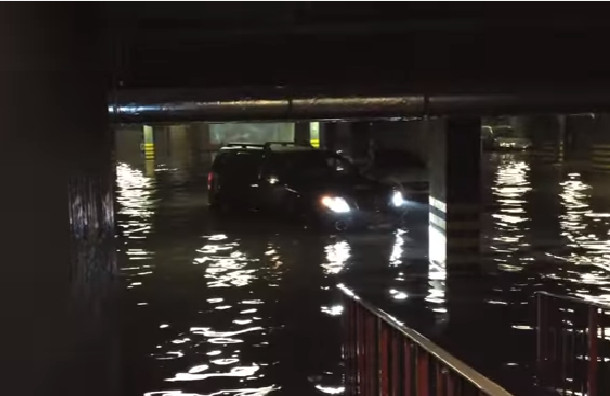 После проливных дождей затопило подземную парковку в многоэтажном доме. Хозяева транспортых средств готовят судебные иски.