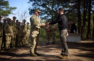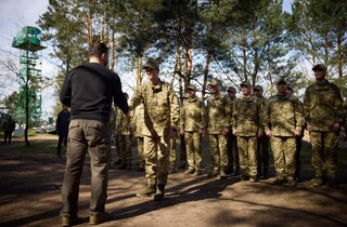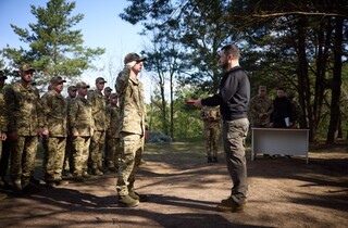 Зеленский пообщался с военнослужащими Государственной пограничной службы Украины и вручил им награды, в частности, ордена Богдана Хмельницкого ІІІ степени, «За мужество» ІІІ степени, а также медали «За военную службу Украине».