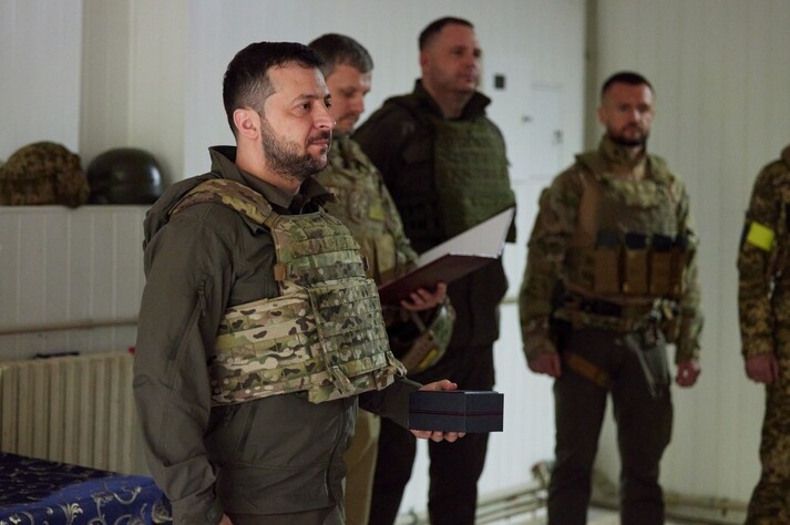В Офисе президента сообщили, что в рамках рабочей поездки в Харьковскую область Зеленский посетил передовые позиции украинских военных.