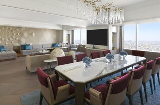Гігантський номер в готелі Four Seasons – один із найкращих у 99-поверховому будинку. Номер займає два поверхи та включає вітальню, особистий кабінет, їдальню та медіазал. 17 кімнат зайняли його сім'я, друзі та служба безпеки. На вечерю португальська зірка з родиною зможе насолодитися стравами з Китаю, Японії, Індії та Близького Сходу, виготовленими зі свіжих інгредієнтів на замовлення.