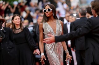 Тренд на максі підтримала і Наомі Кемпбелл. Супермодель викликала фурор у облягаючій сукні Celine з паєтками та глибоким декольте. Знаменита манекенниця доповнила образ масивними браслетами та кільцями на обох руках.