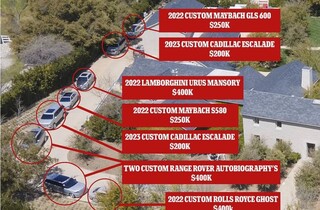 Отже, автопарк Кім (точніше, кількість, яка потрапила в поле зору папараці), налічує: кастомний позашляховик Mercedes-Maybach GLS 600 сріблястого кольору вартістю 250 тисяч доларів, поряд з ним такого ж кольору і теж позашляховик – Cadillac Escalade 2023 за 20. Далі був припаркований модифікований спортивний Lamborghini Urus 2022 року випуску з рекордною вартістю 400 тисяч доларів і V-подібним чорним малюнком на капоті, а потім - виготовлений на замовлення Maybach S580 2022 за 250 тисяч, що, за даними Daily Mail, перевищує середній рік дохід американських сімей у 2021 році втричі.
