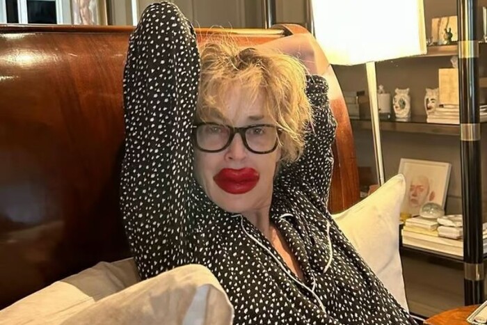 Голлівудські знаменитості Шерон Стоун на днях виповнилося 65 років. З такої нагоди зірка виклала у соцмережах фотографії, на яких постала в незвичайному образі – з розпатланим волоссям, у домашньому халаті та окулярах. Але найбільше увагу прихильників привернули великі накладні губи, що імітують перебір з ботоксом або іншими ін'єкціями для збільшення губ.