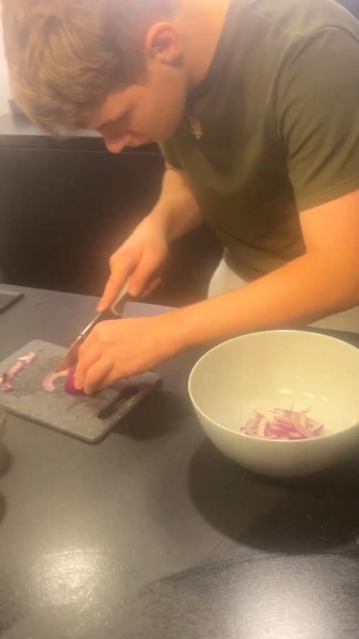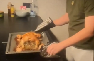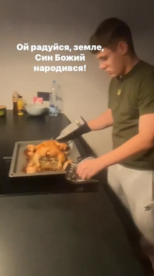 На одному зі знімків Веніамін сфотографований з ароматною індичкою, на іншому – нарізає цибулю для салату. Також мама хлопця додала спільне фото з сном, на якому добре видно, як хлопець схожий на свого тата – продюсера Євгена Огіра, котрий помер від раку шлунку.